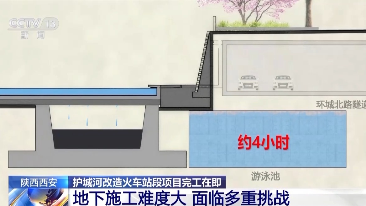以火车站段为例,这里是护城河改造工程当中“最难啃的硬骨头”,尤其是地下施工难度极大。